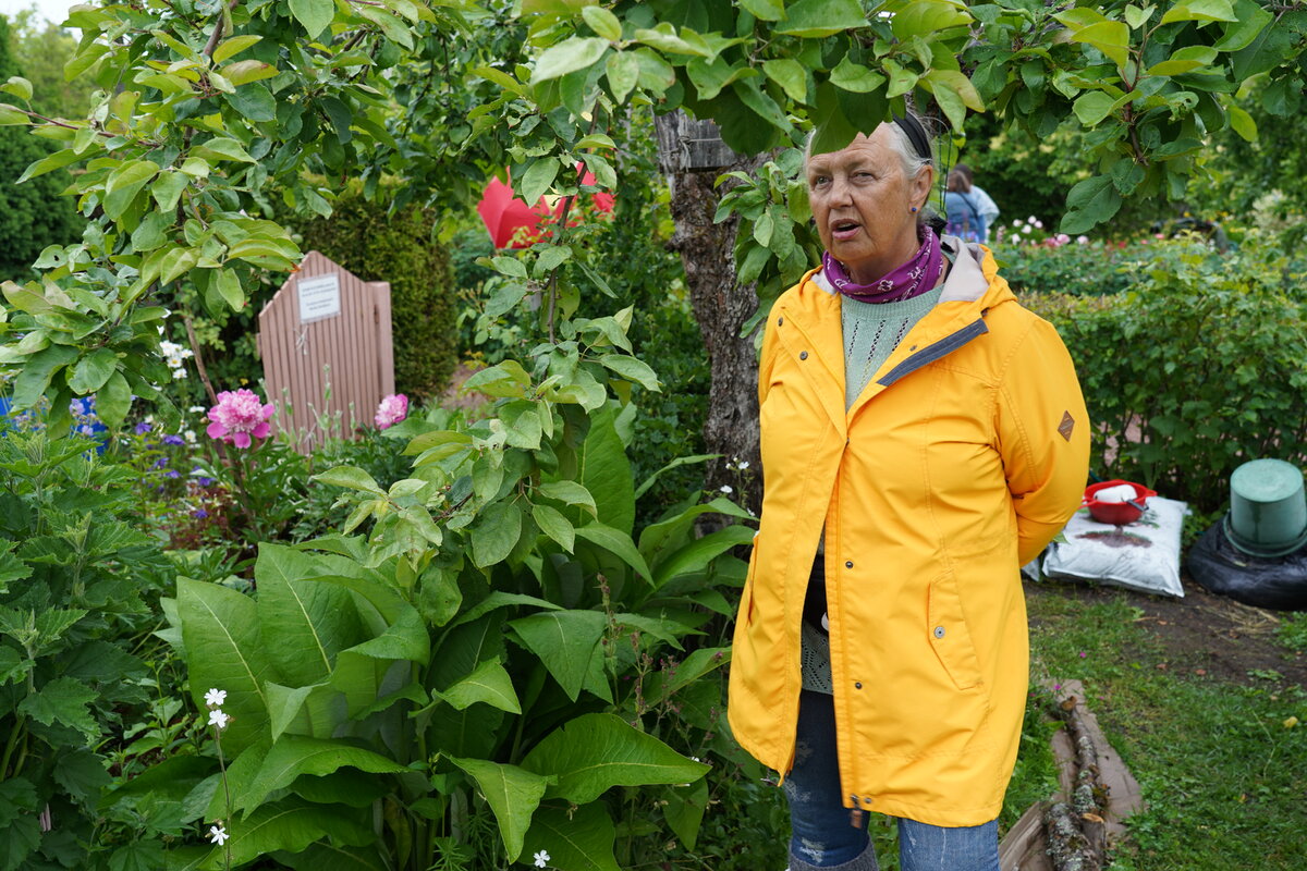 – Pidän portin auki Turku-päivään 15. syyskuuta asti. Kaikki saavat tulla. Olen luvannut, että jos on ongelma kasvin kanssa, niin minä autan. Ja ihan ilmaiseksi, Danielsson vihjaa naurun saattelemana yhtä iloisen keltaisessa sadetakissaan.