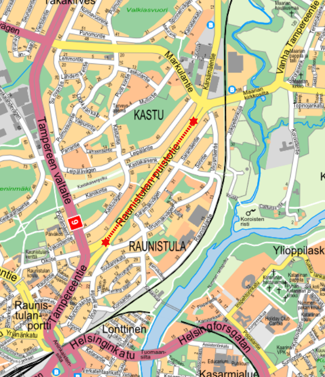 Katupuiden hoitoleikkaus alkaa 12. elokuuta kello 7 Raunistulan puistotiellä. Työn on arvioitu päättyvän 13. syyskuuta mennessä. Liikkuvan työmaan kohdalla on ajoittain kaistasulkuja. Paikalla on liikenneopasteet ja työkoneita liikkuu liikenteen seassa.