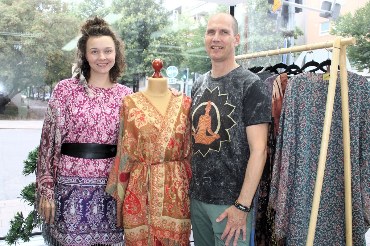 – Meitä kiinnostaa jooga ja nyt hankimme retkeilyauton, jonka kanssa matkustimme viimeksi saaristossa. Käymme sen kanssa myös yhdessä festivaaleilla, joissa meillä on neljän neliön myyntiteltassa kimono-malliston lisäksi myös Jan-Erikin intialainen päähierontapiste.