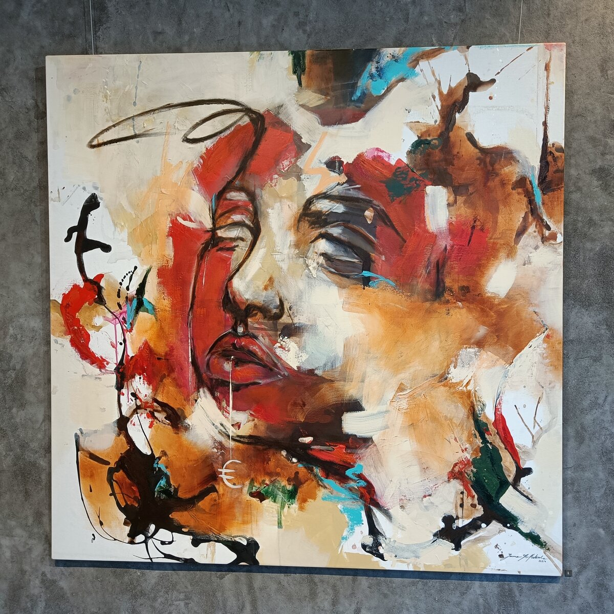 – Teosten keskiössä esiintyvät erilaiset ihmishahmot, joiden avulla havainnollistan tiedostettuja ja tiedostamattomia tunteita ja kokemuksia nyky-yhteiskunnan pyörteissä. Värit liikuttelevat mieltämme mitä ihmeellisimmillä tavoilla ja on mielenkiintoista nähdä, miten ne peilaavat kankaalta katsojaan. Ihmismielen monimutkaisuus inspiroi itseäni syvästi ja erityisesti ihmisen alitajunta tarjoaa mielenkiintoisen näkökulman taiteen luomisessa ja se toimii myös lähtökohtana omalle taiteelleni.