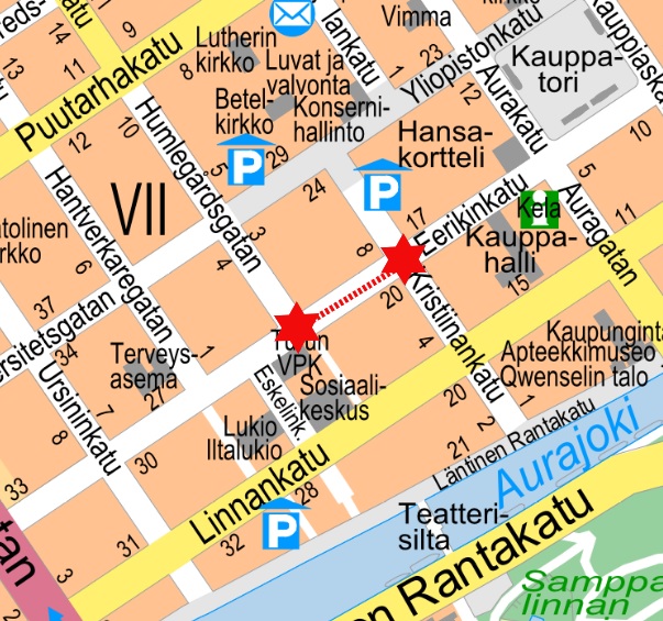 Eerikinkadulla tehdään 26.8.–3.9. jyrsintä- ja päällystystyötä Humalistonkadun ja Kristiinankadun välillä. Yksi ajokaista on pois käytöstä työmaan kohdalla.