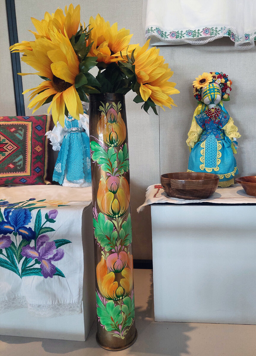 Näyttelyn keskiössä ovat sodan aikana kotirintamalla tehdyt käsityöt, kuten symboliset Motanka-nuket ja moninaiset ristipistotyöt. Käsitöiden lisäksi näyttelyssä on myös ukrainalaisten sotilaiden varustusta sekä sotasaalista kuten hylsyjä, kypäriä, juomapulloja ja sotilaspuku. Ne kaikki kertovat Euroopassa juuri tällä hetkellä käytävästä sodasta.
