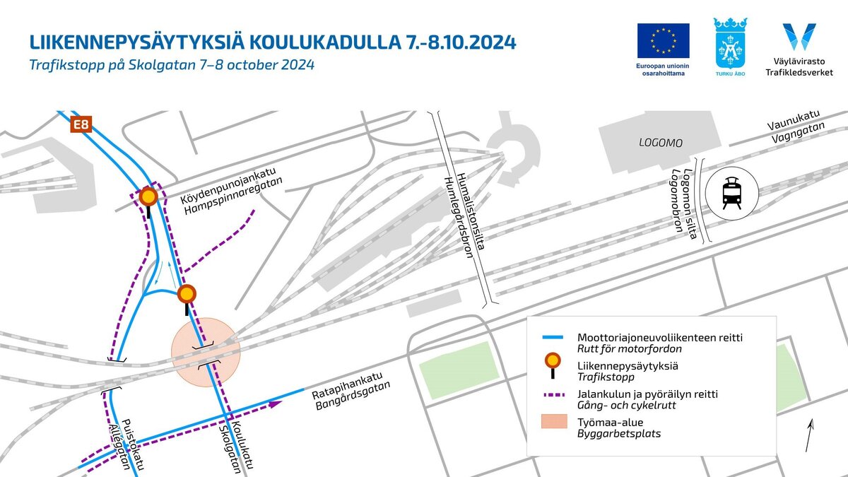 Koulukadulla ja Puistokadulla on liikennepysäytyksiä maanantaina 7. lokakuuta ja tiistaina 8. lokakuuta. Pysäytyksiä tulee sekä Raision suunnasta saapuvalle että Koulukadun sillan pohjoispuolelle ajavalle liikenteelle.