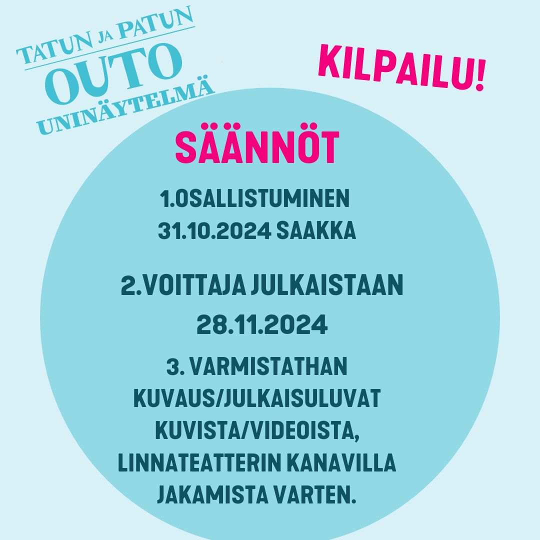 Linnateatteri kutsuu kaikki Turun alueen ja lähiseudun koulut mukaan kilpailuun,, jossa palkintona on Tatun ja Patun outo uninäytelmän ensiesitys.