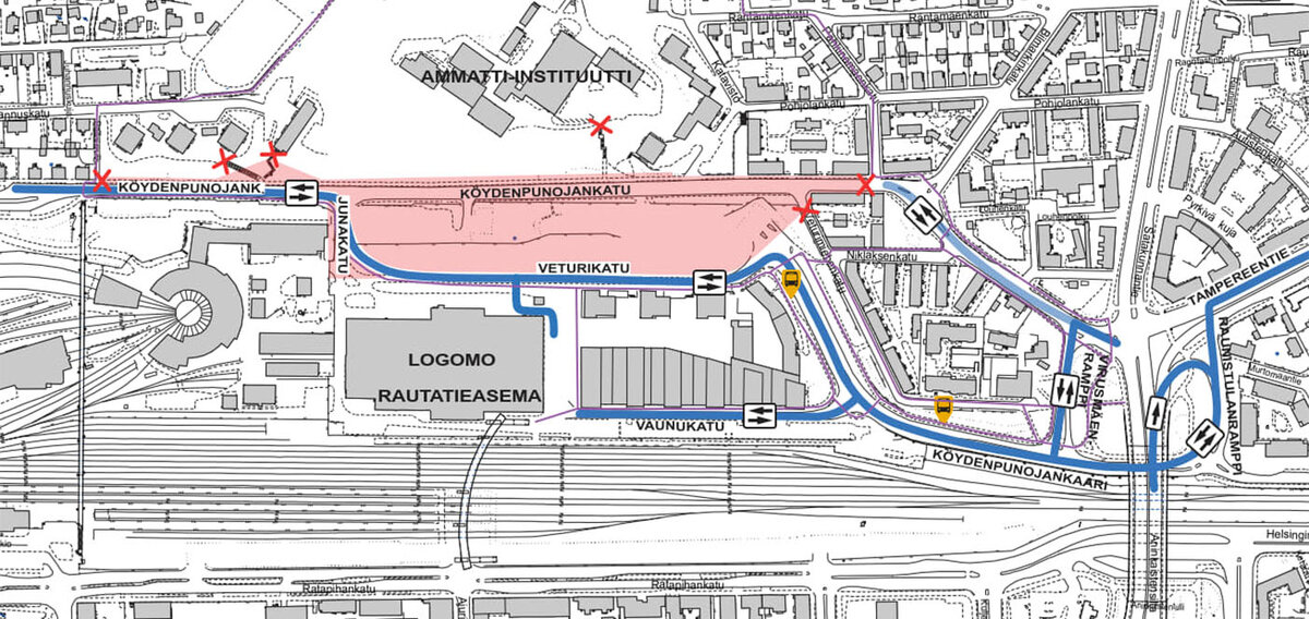 VR:n konepaja-alueen rakentaminen Turussa etenee. Louhintatyöt siirtyvät Köydenpunojankadulle, joka suljetaan torstai-iltana 17. lokakuuta. Liikenne Logomon kohdalla ohjataan kiertotietä Köydenpunojankaarelle ja Veturikadulle.
