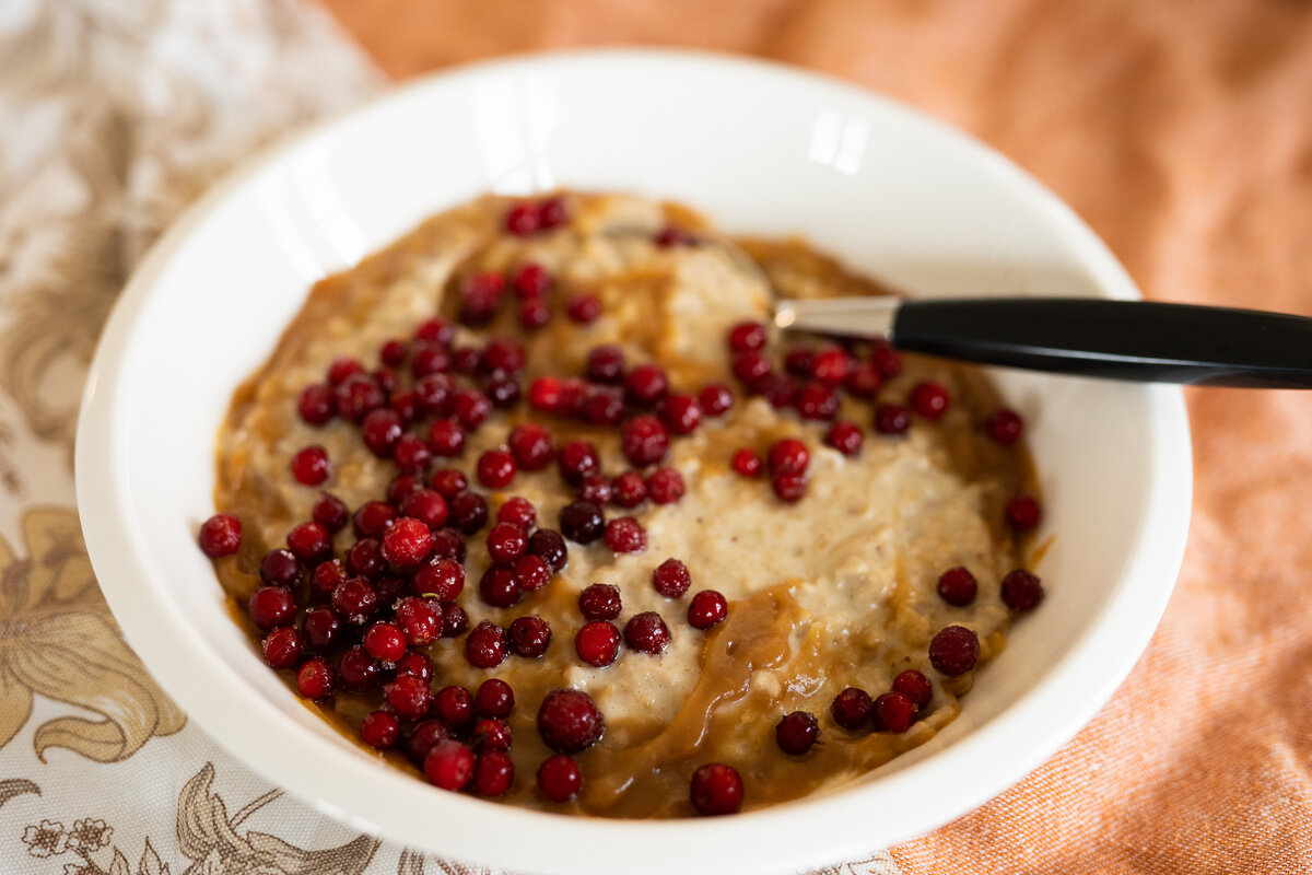 Pehmeä kinuski ja kirpeät puolukat kruunaavat kaurapuuron