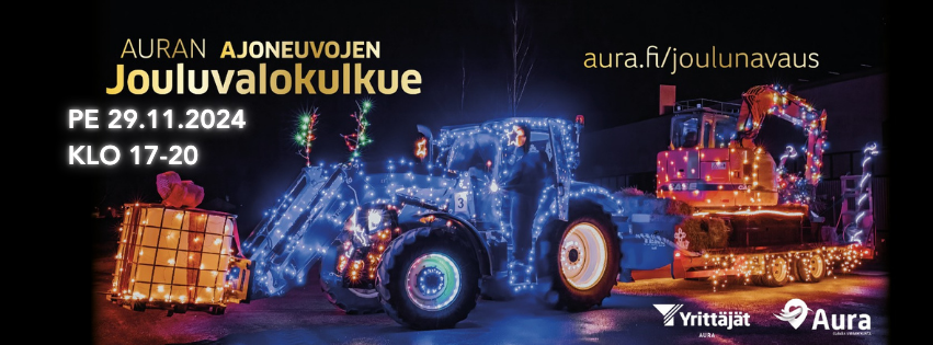 Auran joulunavaus järjestetään perjantaina 29. marraskuuta. Sen odotettu kohokohta on jo perinteeksi muodostunut Ajoneuvojen jouluvalokulkue. Kulkue ajaa ennakkoon merkityn reitin Auran keskustassa. Kulkueessa nähdään niin pienempiä henkilöautoja kuin isoja ja raskaita ajoneuvoja, kuten traktoreita, pakettiautoja, rekkoja ja puimureita.