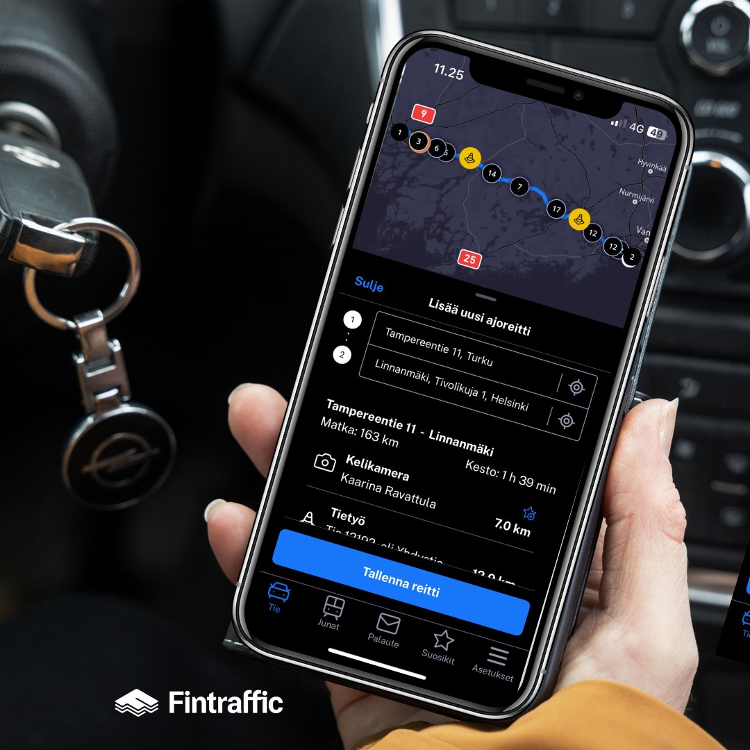 Fintraffic Mobiili -sovellus vastaa näihin tiedon tarpeisiin ja tekee joulunajan autoilusta vähemmän stressaavaa uuden reittiominaisuuden avulla.