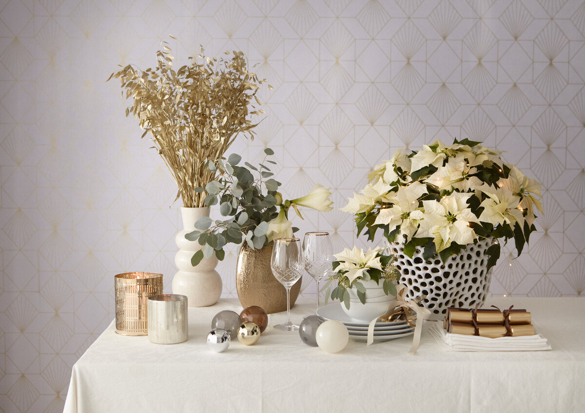Kulta on tunnelmanluoja vuodenvaihteen juhlaan. Kultaiset yksityiskohdat loistavat pimeässä vuodenajassa ja tuovat tunnelmaa arjen keskelle. Trendikkään kermanväriset ja aprikoosiset joulutähdet istuvat yhteen kultaisten ripausten kanssa.