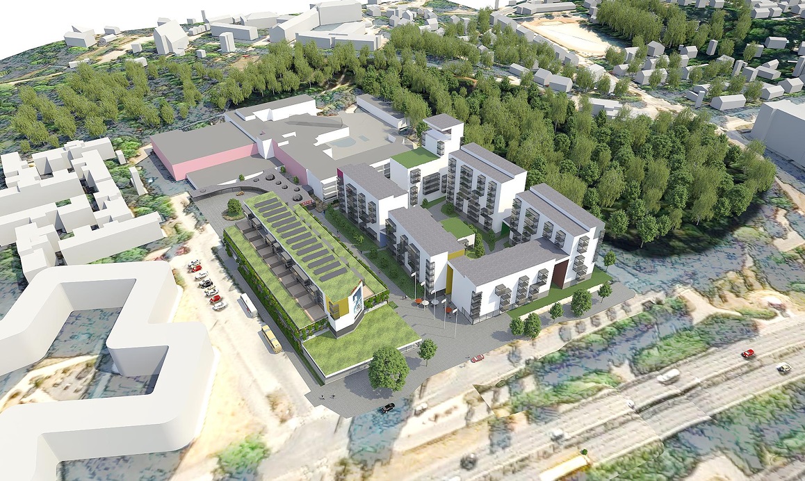 Rakennusten korkein osa nousee tontin itäosassa 12-kerroksiseksi torniksi lähistöllä olevan TYS-Ikituurin vastapariksi.