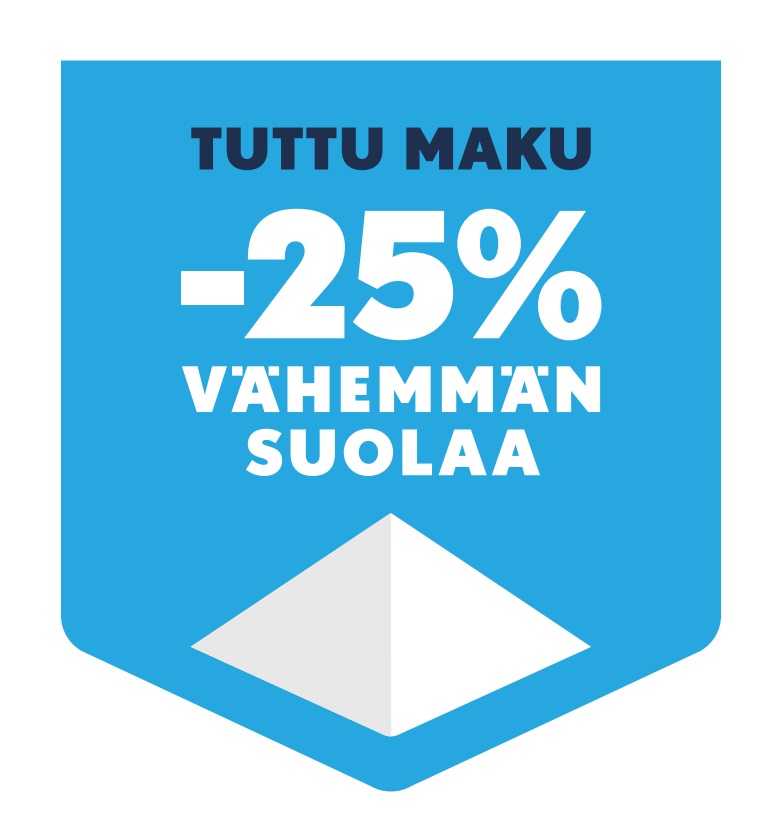 – Olemme tehneet makusuolan tuotekehitystyötä useita vuosia ja panostaneet erityisesti tuotteiden makuun. Pystymme takaamaan, että tuttu maku säilyy, vaikka suolan määrää on vähennetty jopa neljännes. Ravintoarvot, kuten proteiinipitoisuus, pysyvät ennallaan, eikä suolamuutoksella ole vaikutusta tuotteiden rakenteeseen, säilyvyyteen tai hintaan, Nordblom painottaa.