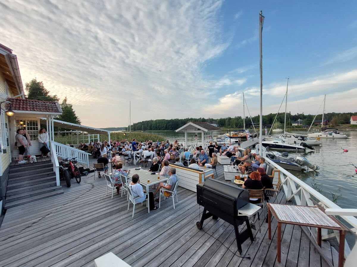 – Pop up -grillijuttuja tullaan kehittämään. Ruokalistalta löytyy pizzaa, salaattia ja burgeria, sekä päivän kala, joka on suosituin annos. Olemme käyttäneet siihen esimerkiksi kuhaa tai siikaa, mutta kalaan tulee varmaan jotain uutta kesäkuun alussa. Kala on sellainen, mitä ihmiset haluavat saaristossa syödä, Vuorio summaa.