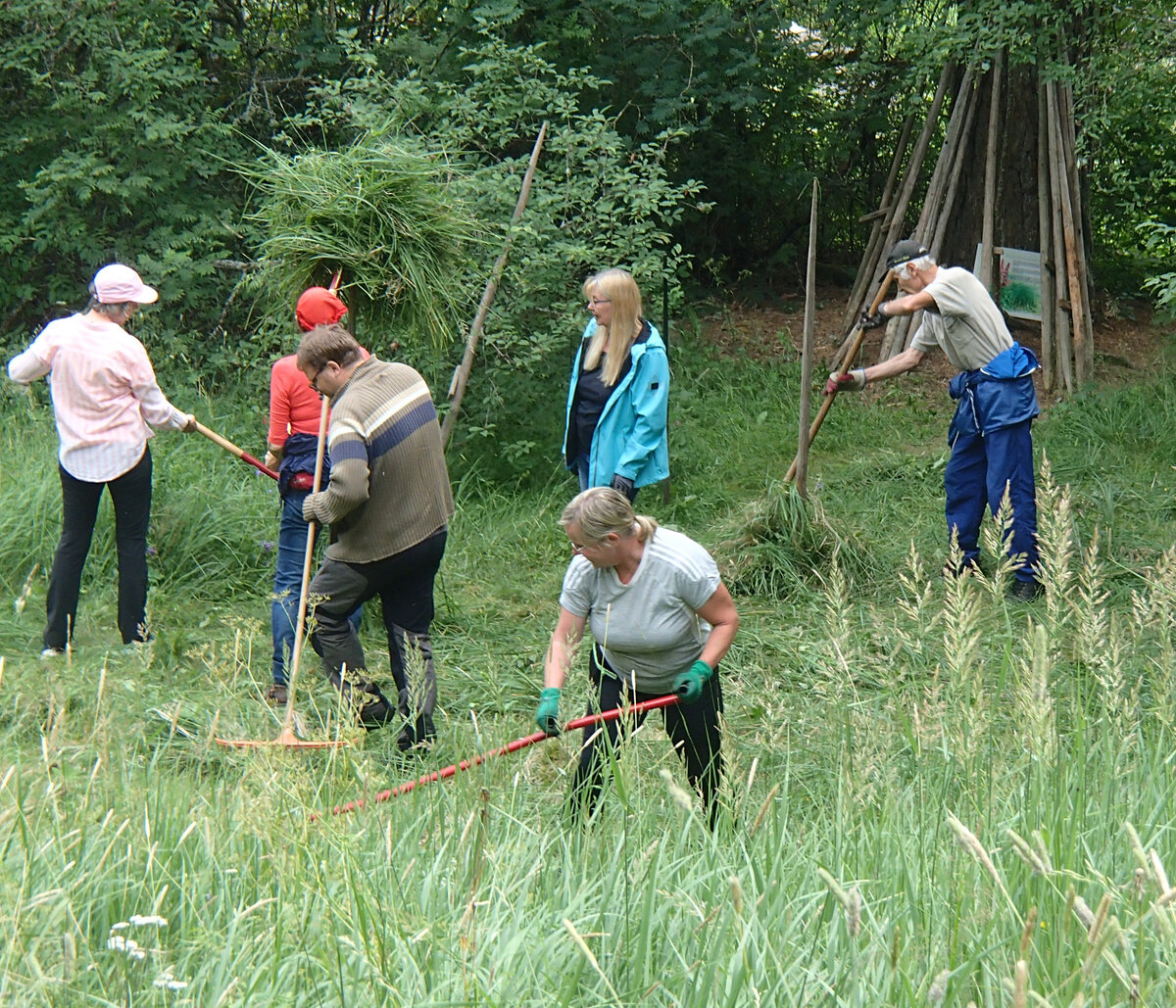 Perinteiset niittotalkoot Nautelankosken luonnonsuojelualueella heinäkuun alussa