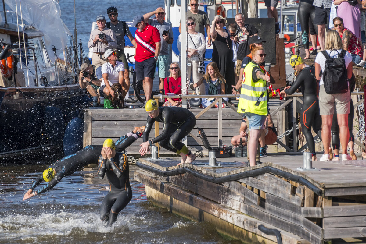 Läntinen Rantakatu on suljettu kello 8–17.30 Veistämönkujan ja Meritullinkadun välillä. Meritullinkatu on suljettu kello 8–17.30. Aurajoki on suljettu muulta liikenteeltä uintiosuuden aikana noin kello 8.50–10.10.