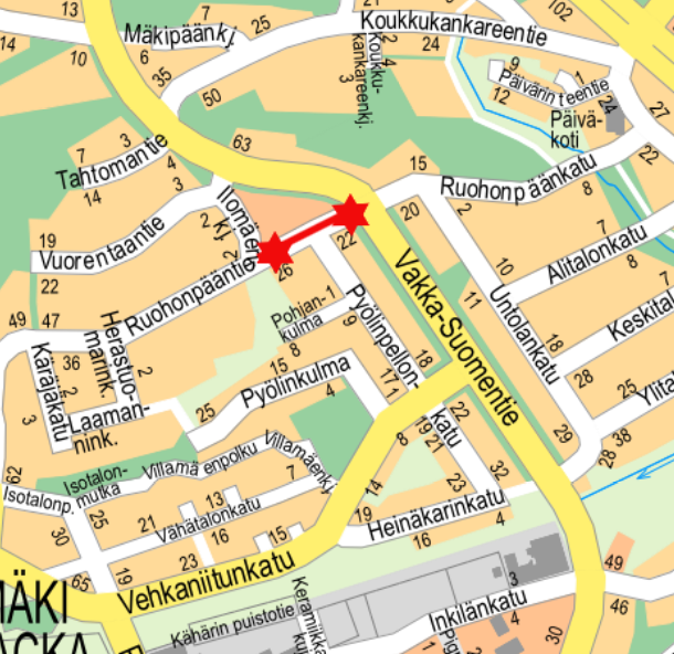 Viemäri- ja vesijohtotyö katkaisee moottoriajoneuvoliikenteen Ruohonpääntiellä 27.8.–31.10. Vakka-Suomentien ja Ilomäenkujan välillä. Kiertotie on opastettu Ilomäenkujan kautta.