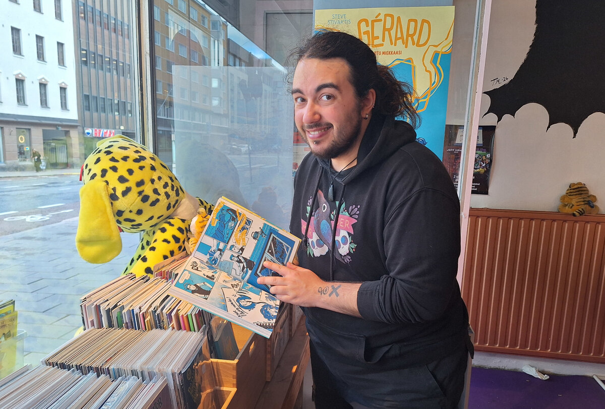 – Ensimmäistä kertaa sarjakuvani käännetään kielelle, jota en osaa lukea. Se on mahtavaa, että Gérard käännetään suomeksi. Näen monia yhtäläisyyksiä Suomen ja Kreikan välillä, Ateenassa kasvanut ja asuva Stivaktis sanoo.
