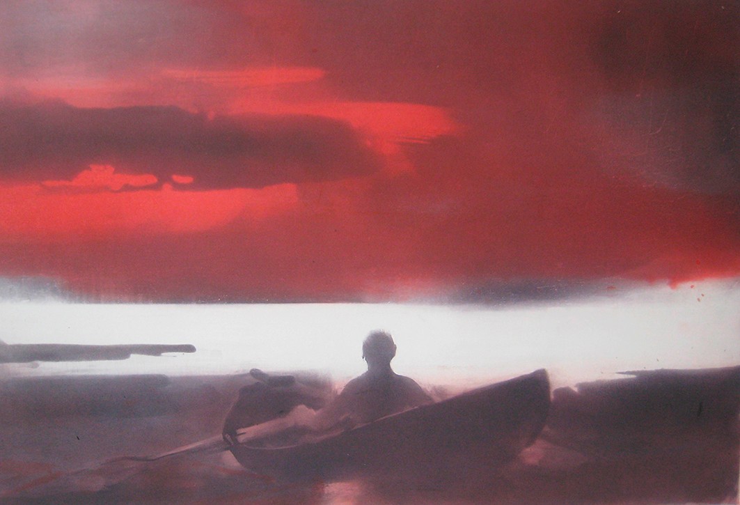 – Näyttelyn kuvat ovat syntyneet pitkän kypsyttelyn tuloksena. Ne ovat eläneet mielessäni vuosia, muovautuneet vähitellen luonnoksiksi ja keskeneräisiksi metallilaatoiksi, kunnes ovat vähitellen löytäneet oman muotonsa. Ajatus soutuveneestä ja järvestä on kulkenut mukana erityisen vahvana – ne olivat lapsuudessa ja nuoruudessa niin keskeinen osa olemista, että niistä on kasvanut minulle paitsi muistojen kantajia myös vertauskuvia, melkein pakkomielteisiä hahmoja, kertoo Karjalainen tiedotteessa