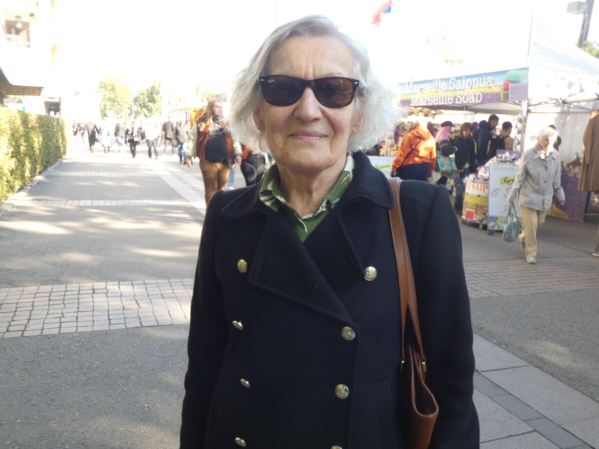 – Asun aika lähellä ja tulin kurkkaamaan, kun olin menossa kotiin päin. Tämä on ihan hyvä tapahtuma. Nimenomaan täällä tulee nälkä. Silloin, kun on liikaa porukkaa, baana on aika kapea. Kyllä minä joka vuosi käyn täällä. Täällä on kiva tunnelma, hyvä sää ja kansainvälisyys on mukava asia, sanoo Eila Kemppainen.