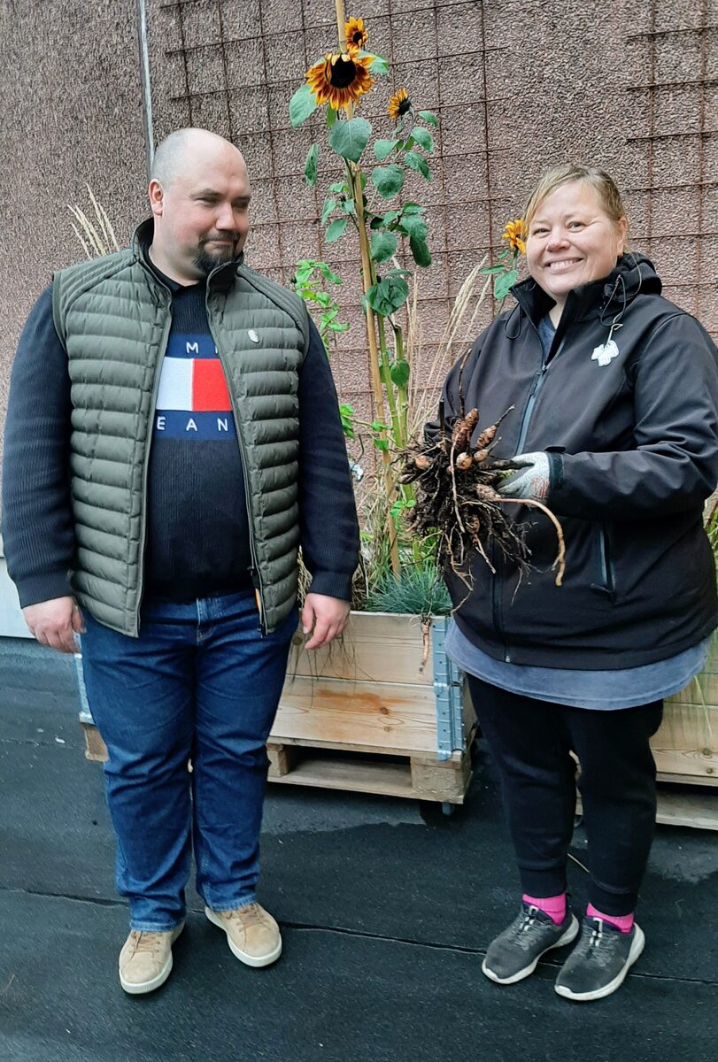 – Meillä on hyötykasvejakin. Olemme tehneet yhteistyötä Hansan Nuokkarin kanssa, ja he ovat saaneet päättää sovitun budjetin puitteissa mitä kasvatetaan Nuokkarille hyödynnettäväksi. Kukista taas on tehty pitkin kesää kimppuja, joita on lähetetty tervehdyksinä seurojen ohjaajille, opettajille, arvontojen palkinnoiksi, festareiden artisteille. Edellisenä kesänä satoa saatiin sataan kimppuun Kasveilla olemme maustaneet myös tervehdysjuomia terassin erilaisiin tilaisuuksiin, Takkinen kertoo.