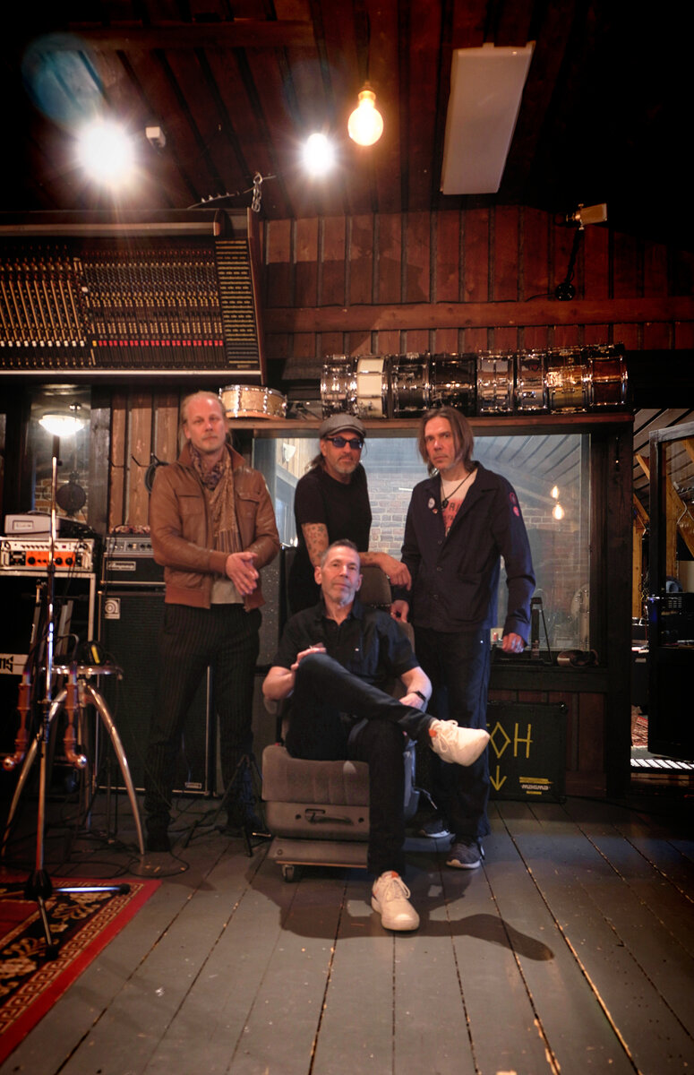 Kaukosen ympärillä Pilsneripop-bändin muut jäsenet Jarmo Hauhtonen, Mäikkä Tuomi ja Ville Vesalainen nyökkäilevät kuorossa.