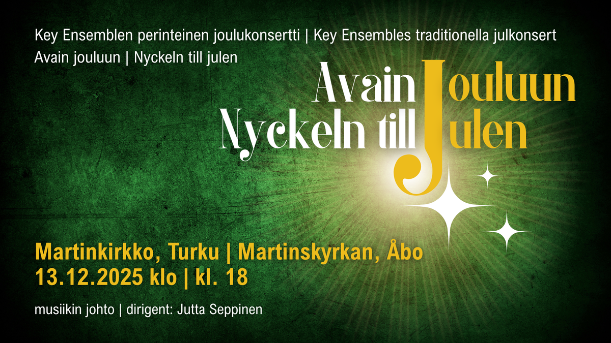 Kamarikuoro Key Ensemblen joulukonsertti Avain jouluun järjestetään Martinkirkossa lauantaina 13. joulukuuta kello 18
