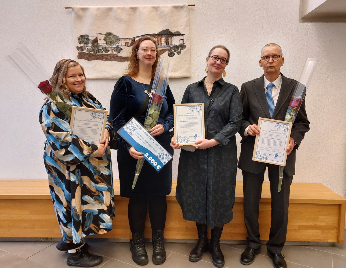 Palkituille luovutettiin juhlassa 2 000 euron arvoinen rahapalkinto ja kunniakirjat. Palkinnon vastaanottivat Pekka Salmi sekä Kriivarin koulun puolesta rehtori Sari Välimaa sekä Jutta Mutila ja Anne-Mari Auer koulun vanhempainyhdistyksestä.
