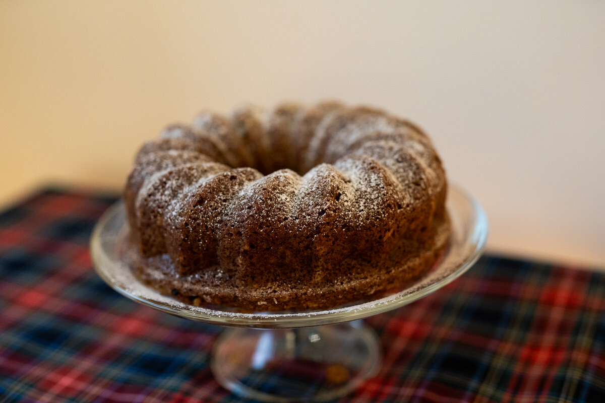 Voitele ja jauhota kakkuvuoka vehnäjauholla. Sulata voi ja anna sen hieman jäähtyä. Sekoita vehnäjauhot, sokeri, sooda, kaikki mausteet ja rusinat puuhaarukalla keskenään. Lisää piimä ja lopuksi rasva. Sekoita ainekset puuhaarukalla juuri ja juuri sekaisin, ettei taikina sitkisty. Kaada taikina vuokaan ja paista 180 asteessa uunin alimmalla tasolla noin 45–60 minuuttia, riippuen uunista.