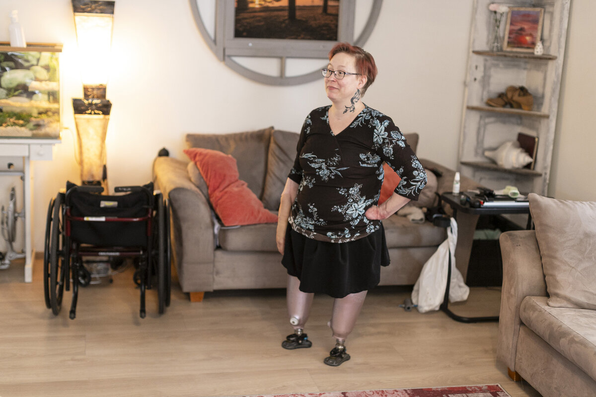 – Erityisesti lapset kyselevät, että miten tuo täti on niin pieni. Käytän yleensä lyhyitä proteeseja jaloissa, koska niiden kanssa on helpompi ja huomattavasti tukevampi kävellä.