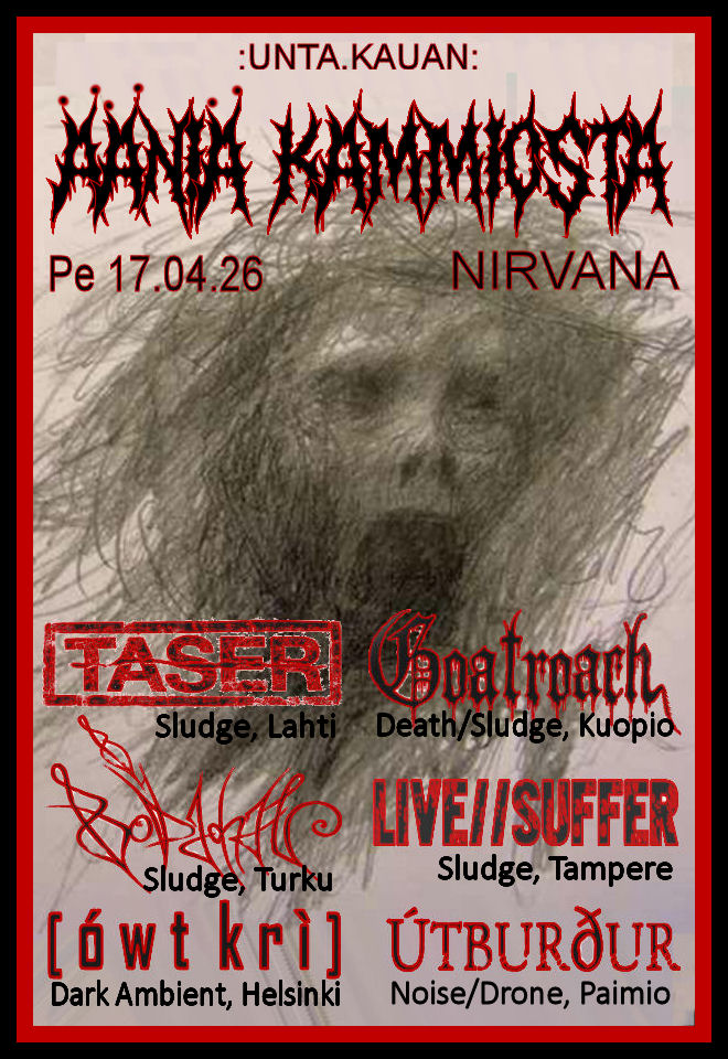 Unta.Kauan järjestää perjantaina 17. huhtikuuta sludgen täytteisen live-illan Kulttuuritalo Fuusion alakerrassa Nirvanassa. Mukana on useampi bändi, jotka tekevät samalla ensiesiintymisensä Turussa: Kuopion doom deathin ja sludgen sanansaattaja Goatroach, Tampereen sludgevyöryttäjä Live // Suffer ja raskaan sarjan Taser Lahdesta.