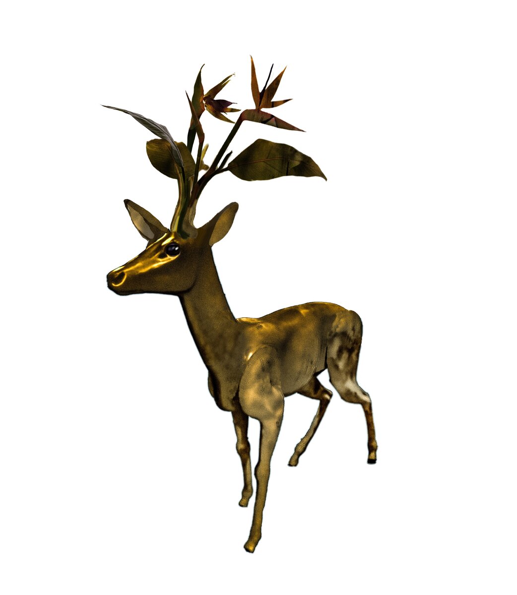 Kalkamon veistos vie ajatukset luontoon ja eläinkuntaan. Kolibrikruunussa metsäkauriin sarvet versovat kolibrinkukkia, luoden mielikuvitusta kutkuttavan ja symbolisesti rikkaan näyn.