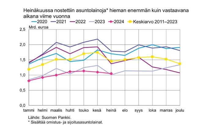 Heinäkuussa nostettiin asuntolainoja hieman enemmän kuin vastaavana aikana viime vuonna