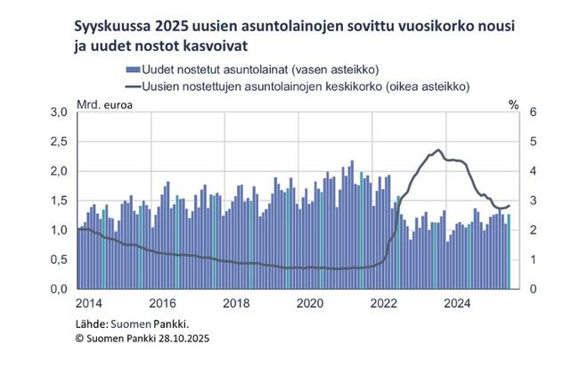 Uusien asuntolainojen korko nousi hieman syyskuussa