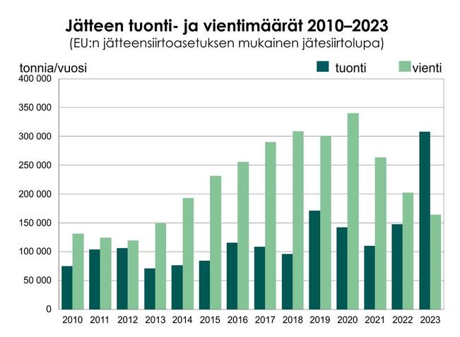 Jätteiden tuonti Suomeen kasvoi viime vuonna