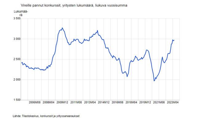Konkurssihakemusten määrä 2000-luvun ennätykseen