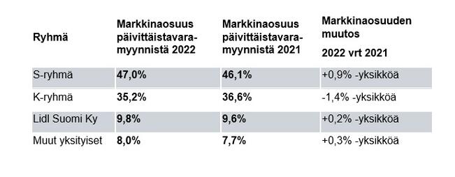 S-ryhmä kasvatti ainoana markkinaosuuttaan