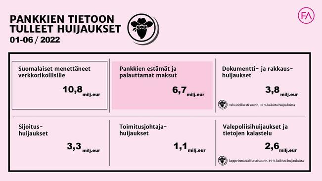 Pankit torjuivat alkuvuodesta huijauksia 6,7 miljoonan euron edestä