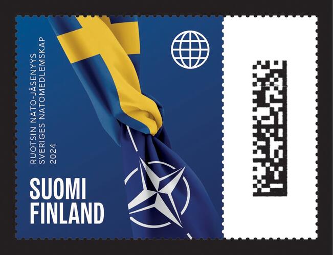 Postimerkki juhlistaa Ruotsin Nato-jäsenyyttä