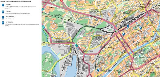 Puita kaadetaan Vanhalla Suurtorilla, Kupittaanpuistossa, Kerttulinkadulla ja Samppalinnassa