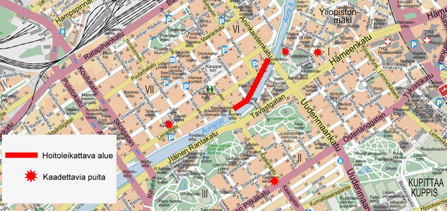 Puiden talvikaadot jatkuvat keskustassa