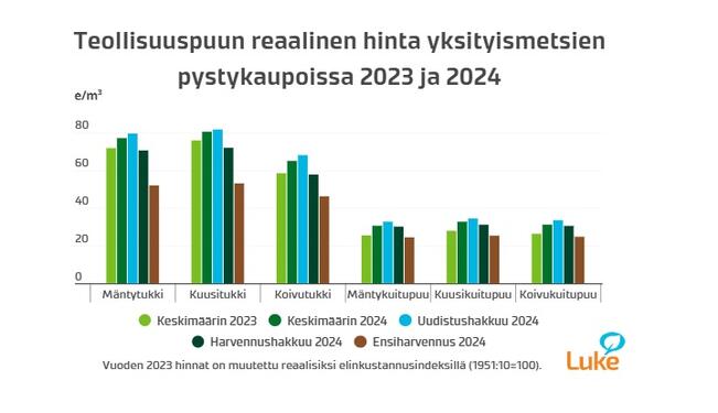 Puukauppa kuumeni viime vuonna – kuitu- ja energiapuu kallistuivat eniten