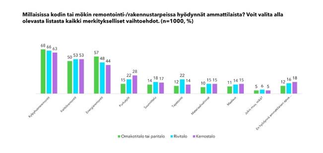 Omakoti- ja paritaloasujat tekevät mielellään pientä pintaremonttia itse, kerrostaloissa tukeudutaan enemmän ammattilaisen apuun pienissäkin remonteissa