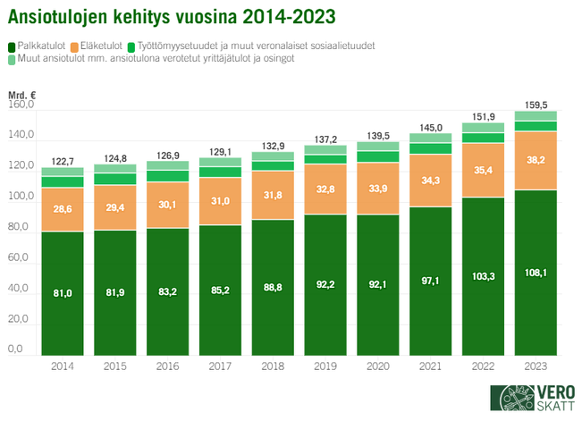 Verohallinto on saanut vuoden 2022 tuloverotuksen päätökseen. Vuoden 2022 tuloverojen määrä (henkilöiden tuloverot ja yhteisöverot) oli yhteensä 43,4 miljardia euroa, eli miljardi euroa enemmän kuin vuonna 2021 (+2,4 %). Keskimäärin suurimmat veronpalautukset ja mätkyt maksettiin Kauniaisissa. Vuoden 2022 henkilö- ja yhteisöverotuksen verotiedot tulevat julkisiksi keskiviikkona.