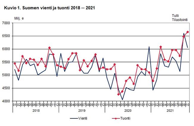 Tavaraviennin arvo nousi 17,5 prosenttia helmikuussa