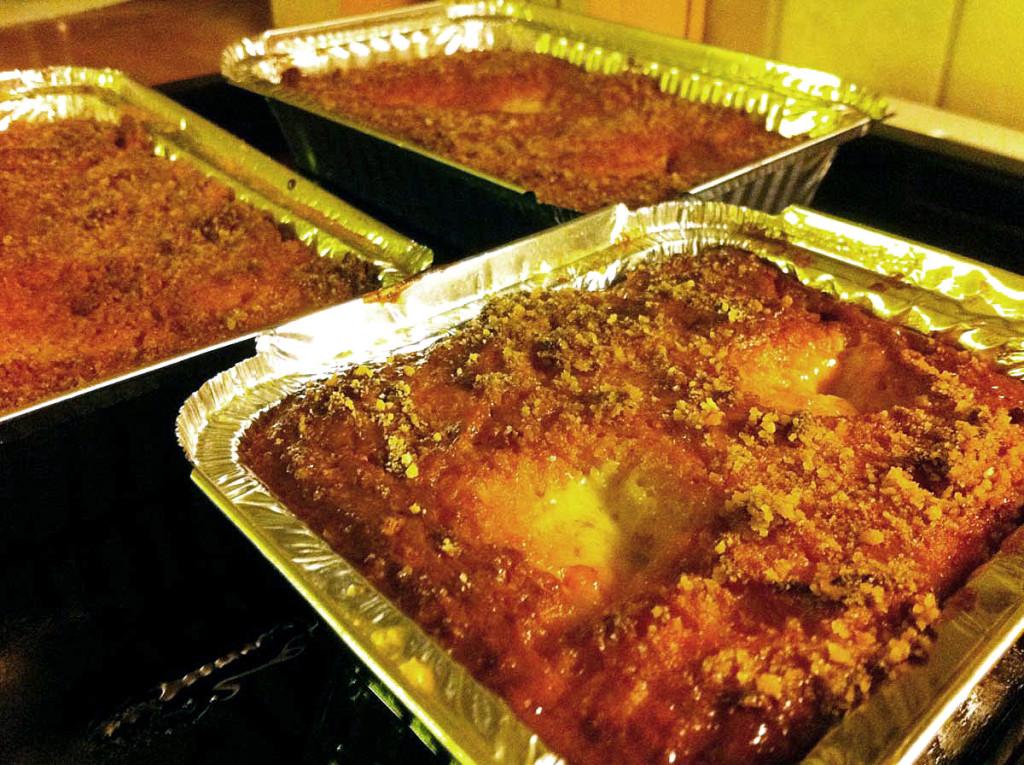 Kaada seos mataliin foliovuokiin. Lasivuokaan kaadettaessa pitää muistaa, että laatikosta ei saa tulla liian paksu. Ripottele pinnalle korppujauhoja sen verran, että pinta juuri ja juuri peittyy. Auraa haarukalla poikittaissuuntaiset urat ja jätä haarukanleveys väliä. Auraa näihin kohtiin ura vastakkaiseen suuntaan. Juu, sekavalta kuulostaa, mutta katso kuvasta. Laita pinnalle voikokkareet ja paista laatikoita tunti uunin keskitasolla 200 asteessa. Se on siinä.