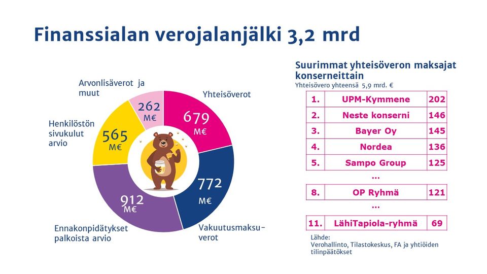 Finanssialalla 3,2 miljardin euron verojalanjälki