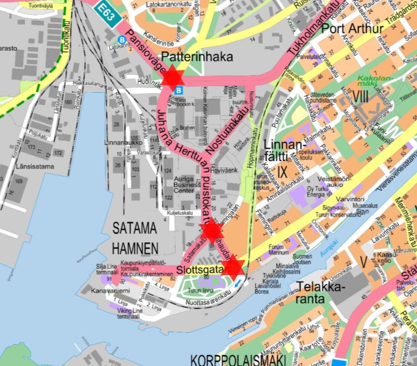 Pansiontien ja Juhana Herttuan puistokadun risteyksen liikennevalot ovat pois toiminnasta noin keskiviikkoon 19. toukokuuta saakka. Risteysalueella tehdään kadunrakennustöitä.