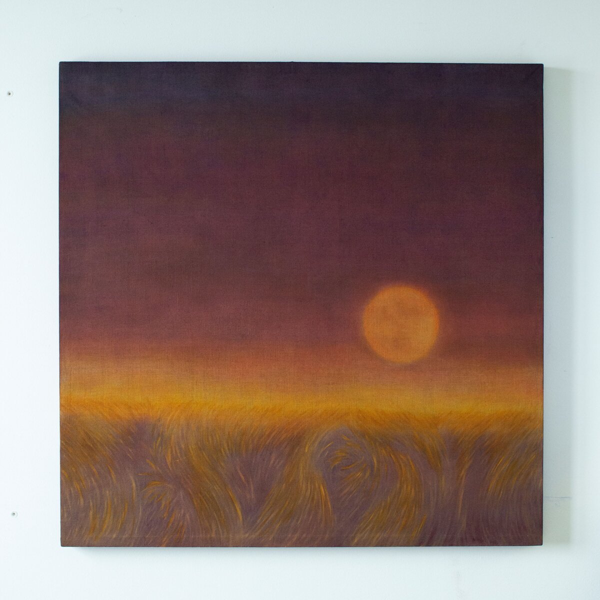 – Uusimmat teokseni ovat maisemakuvaelmia, joissa erilaiset kuutamot ja kuu itsessään ovat toimineet suurimpana innoittajana. Ne voi halutessaan kategorisoida maisemamaalauksen pitkään perinteeseen, johon ne nähdäkseni hyvin sopivatkin. Teokset eivät kuitenkaan ole suoria jäljitelmiä nähdystä maisemasta tai tietyistä koetuista hetkissä tunnistettavassa maisemassa, vaan pyrkivät enemmänkin tavoittamaan jokin aiemmin koetun tunnelman tai katsomiskokemuksen. Rakennan kuvaa muistoista, jotka eivät välttämättä rajoitu vain valveen maailmaan. Yhtä lailla unet ja niiden kummat tunnelmat ovat toimineet inspiraationa teoksilleni. Maisema ja valo, liikahdus kuutamossa.