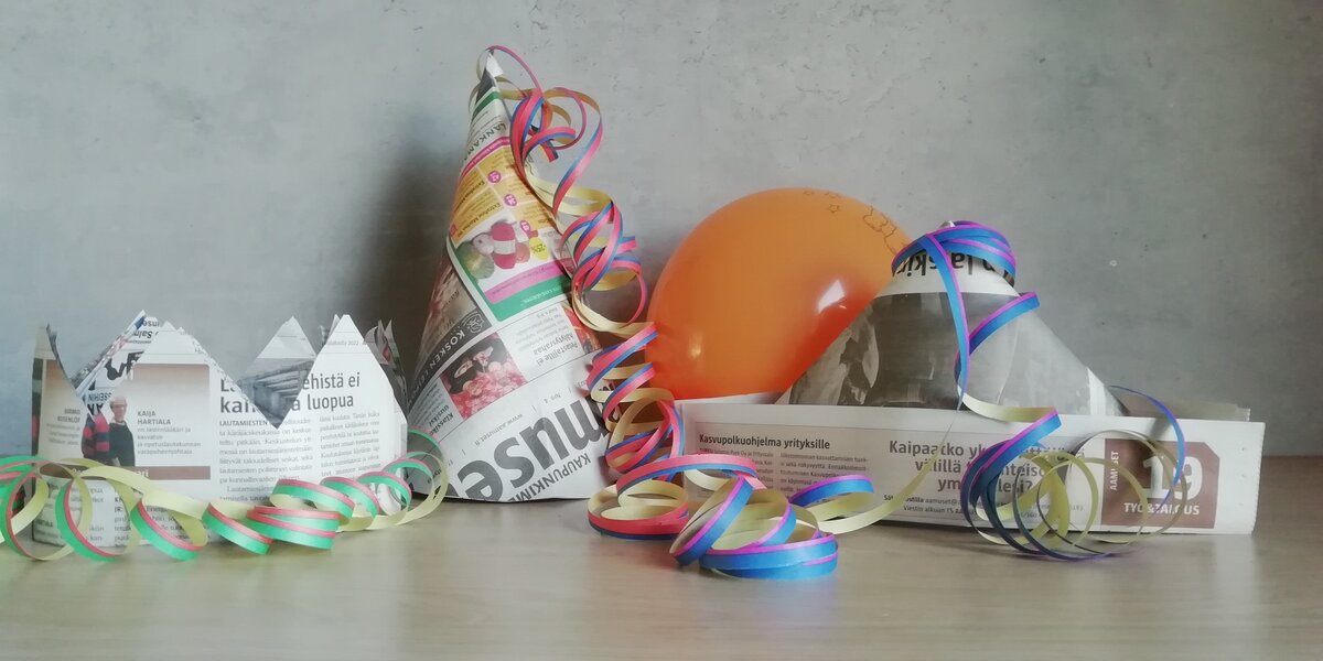 Värikkäämpää päähinettä halajava voi koristella hatut serpentiinillä, kreppipaperilla tai pääsiäisestä yli jääneillä höyhenillä. Sanomalehtipaperin voi myös ennen taittelua maalata vesiväreillä.