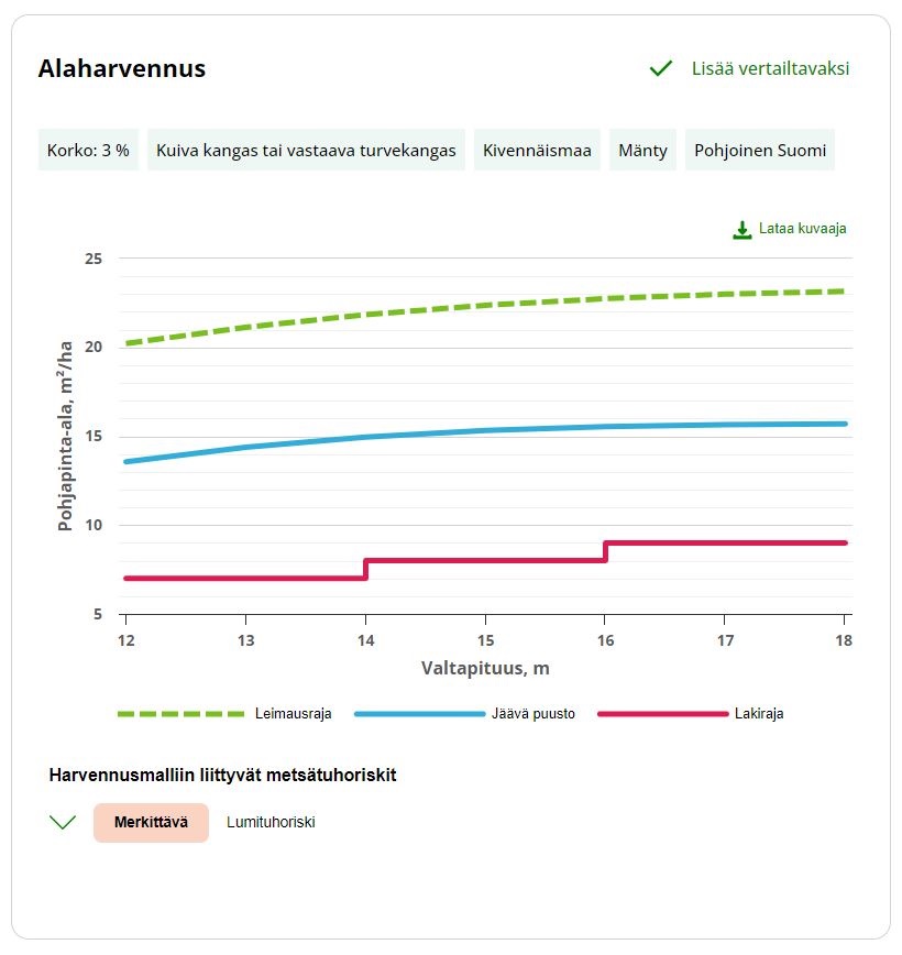 Metsänomistajan tavoitteita voidaan nyt huomioida aiempaa paremmin. Esimerkiksi taloudelliseen tuotto-odotukseen on kolme vaihtoehtoa. Omat mallinsa löytyvät sekapuuston kasvatukseen ja pidennettyyn kiertoaikaan, yläharvennukseen sekä tilanteeseen, jossa turvemaalle ei tehdä ojien kunnostusta harvennusaikana. Valitun mallin lisätietona kerrotaan mahdollisista metsätuhoriskeistä. Jos metsänomistajalla ei ole erityisiä tavoitteita, voidaan käyttää ns. perusmalleja, jotka ovat lähellä jo pitkään käytössä olleita.