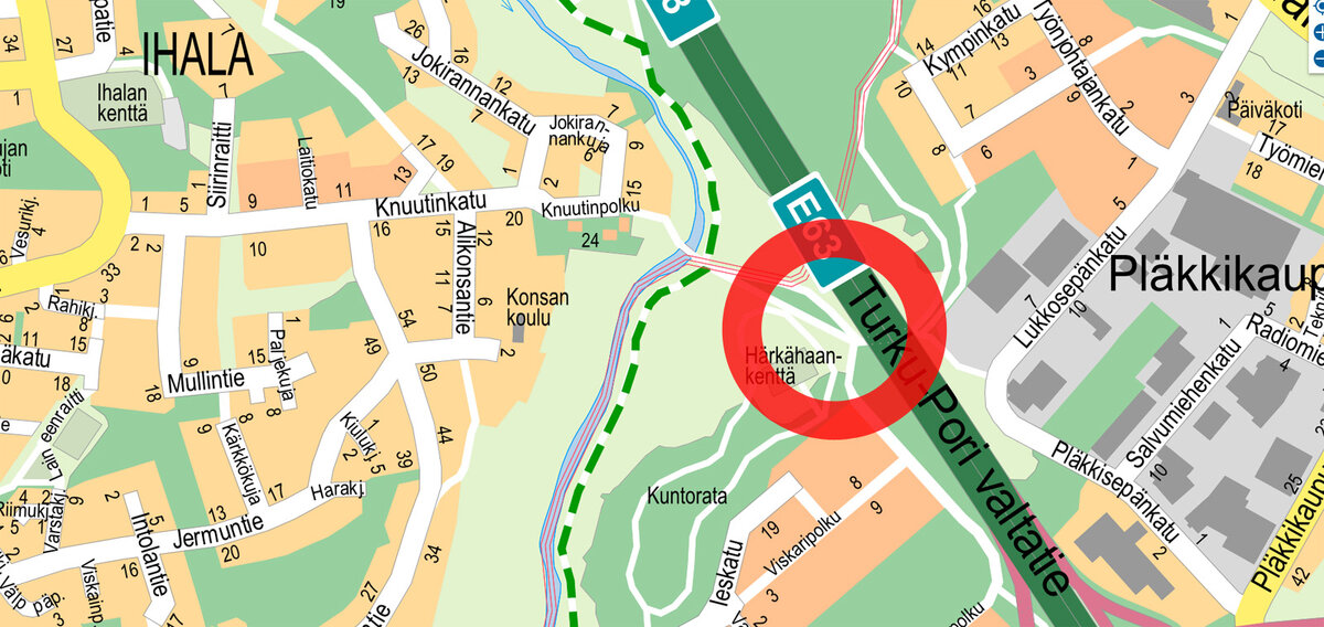 Härkähaan jalankulku ja pyörätie on osa valtakunnallista kevyen liikenteen verkostoa. Härkähaan kentän kohdalla sijaitseva risteyspaikka on koettu vaaralliseksi. Nykyinen linjaus aiheuttaa yllättäviä tilanteita, kun moottoritien alittava liikenne risteää kovalla vauhdilla ajettavan Härkähaan väylän. Lisäksi liikennejärjestelyt ovat mahdollistaneet oikaisun pyörällä läheisen kuntoreitin kautta. Kuntoreitillä on pyöräily kielletty.